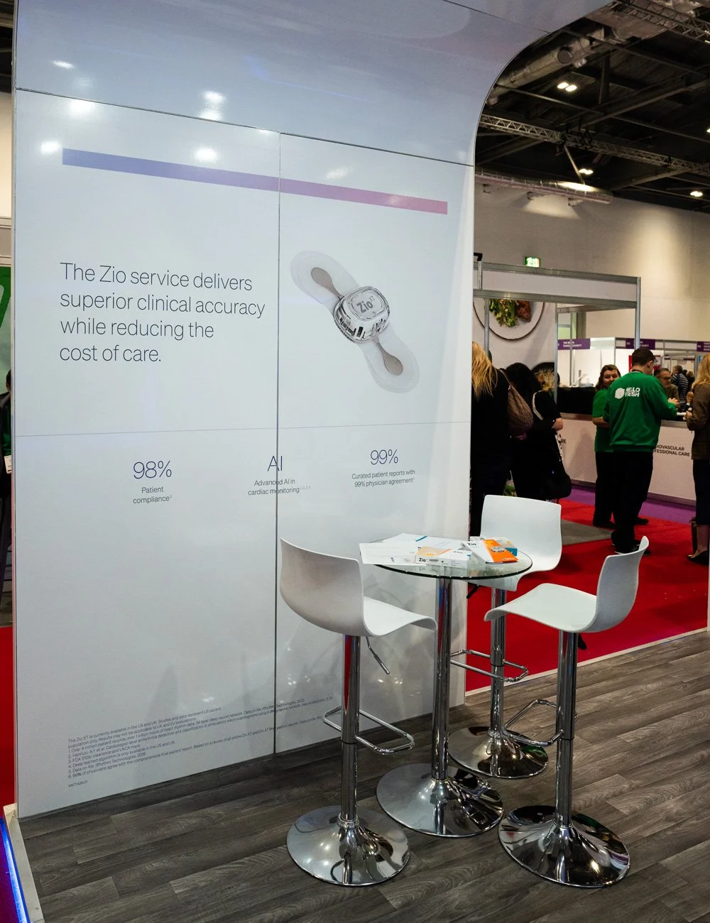iRhythm needed a reliable partner to manage its presence at major medical and healthcare exhibitions across Europe. The organisation required a consistent, high-quality exhibition stand that showcased its innovative products and brand effectively. Additionally, iRhythm needed a partner who could offer year-round storage and logistics support for their marketing collateral and exhibition materials.